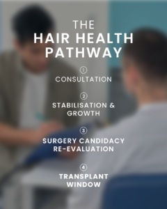 The Hair Health Pathway is MedHair’s structured, surgeon-led approach to ethical hair restoration. Every patient begins with a medical assessment, followed by a personalised plan that may include medication, PRP, or surgery if clinically appropriate. By prioritising scalp health and long-term follicle stability, the pathway is designed to support natural results and sustainable outcomes over time. Hair restoration is not a single procedure, but a considered medical journey to achieve a lifetime result. Book your consultation via our website today